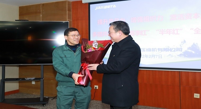 2月7日,新春節后上班第一天,南湖區委書記邵潘鋒到公司走訪慰問,開展“入企大走訪,全面穩復工”活動,希望公司激發最大生產力,實現一季度工業經濟“開門穩、開門好”,在高質量發展中行穩致遠,給公司黨委書記、總經理張勤建送上獻花。