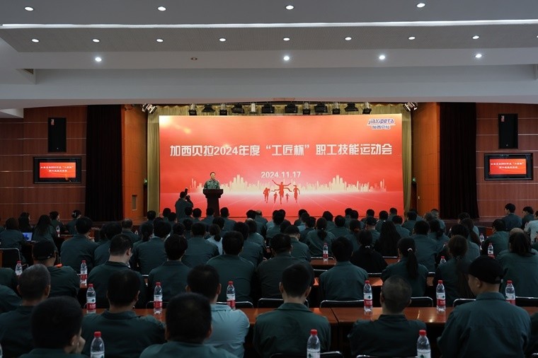 技能比武展風(fēng)采,以賽促學(xué)礪強兵。為培養(yǎng)造就更多“加貝工匠”“技術(shù)能手”“技術(shù)標(biāo)兵”,11月17日,2024年度加西貝拉“工匠杯”職工技能運動會(技能比武總決賽)在公司二廠隆重舉行,339名“加貝工匠”走上加西貝拉年度技能比武“星光大道”總決賽,在12個競賽項目上大展身手。大會向公司全體員工發(fā)出“爭做企業(yè)工匠 鑄造一流精品”倡議書。